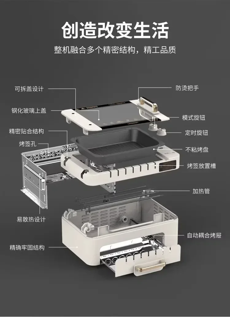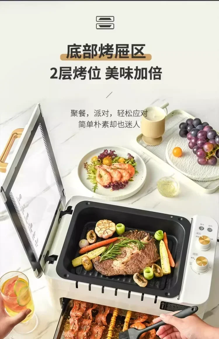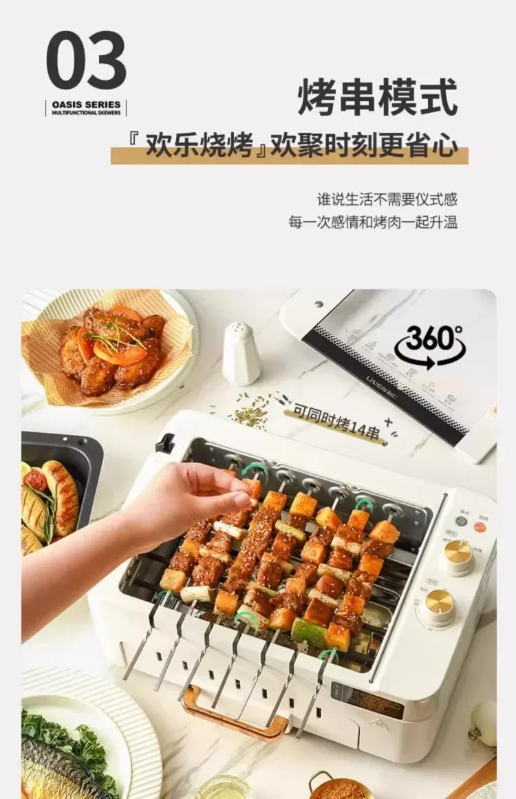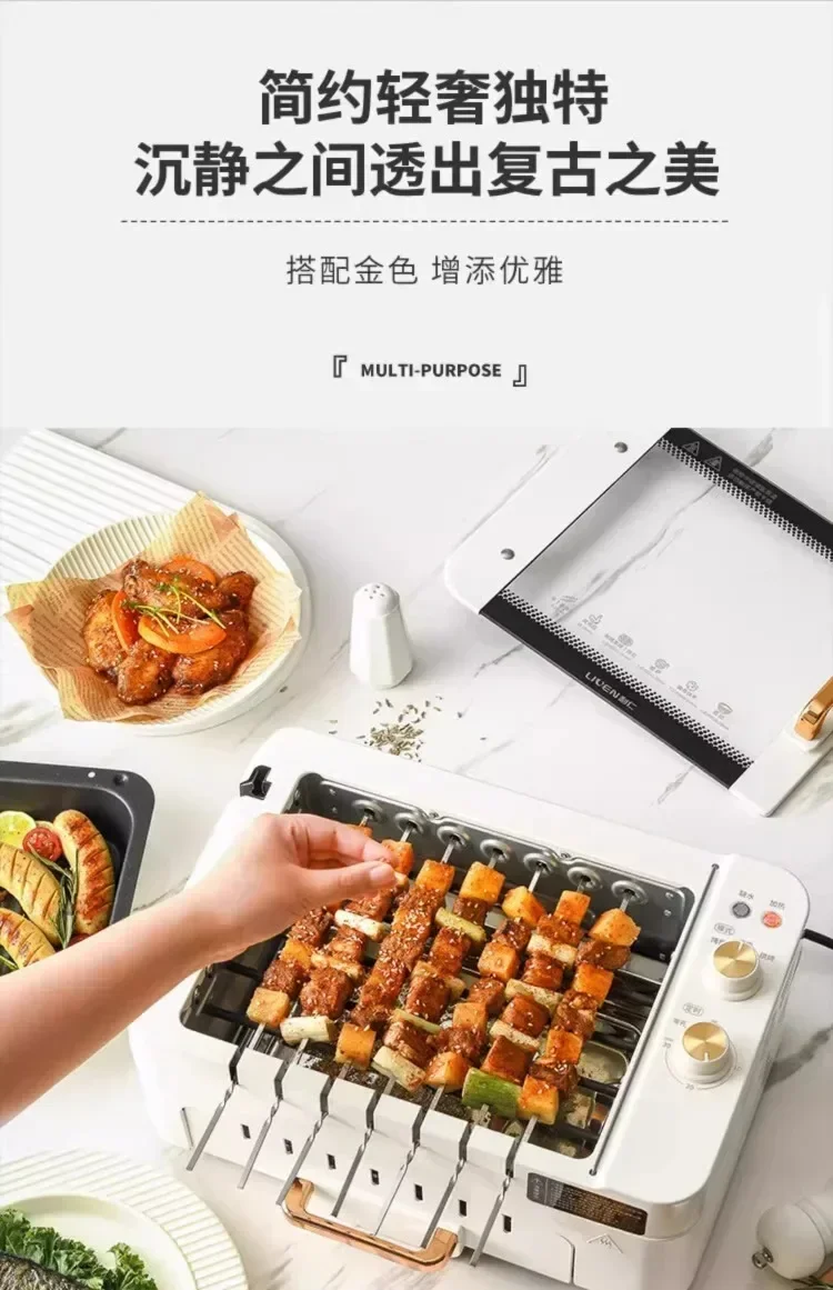 220V Automatic Multi-functional Indoor Electric Oven for Home Use with Smokeless BBQ Grill Turnspit Rotisserie AD