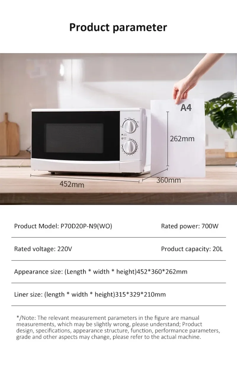 Microwave oven 20 litres Rotary heating Multifunction Mechanical controls